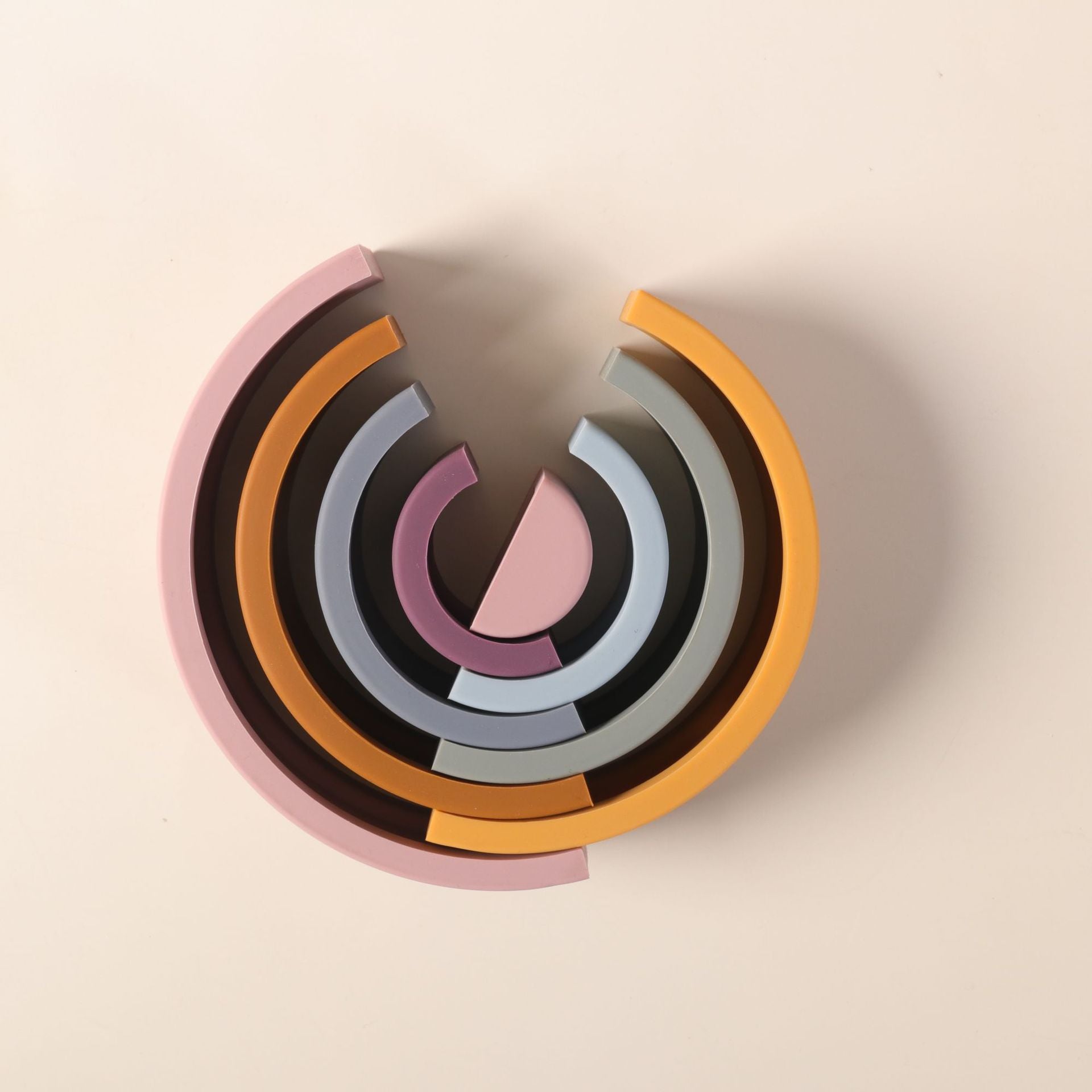 Silicone Rainbow Circle Clouds Arch Building Blocks Stacked Ring Children's Fun Colorful Building Blocks Toy