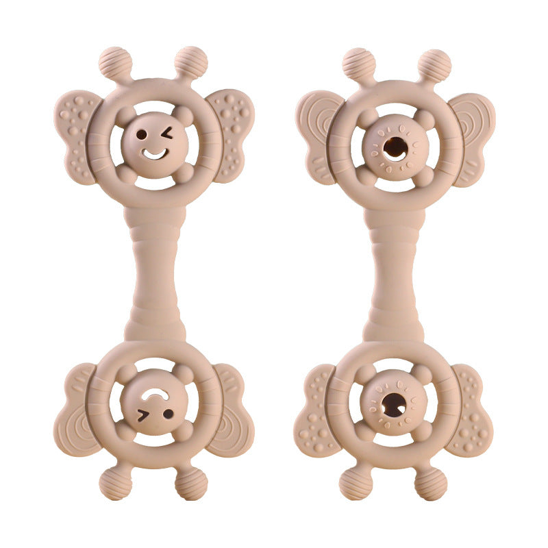 Crafted from 100% food-grade silicone, this butterfly-shaped teether rattle is ultra-soft and flexible—its gentle rebound and tear-resistant design stand up to babies’ enthusiastic chewing, while being kind to tender gums and small hands. BPA-free and non-toxic, it’s a worry-free choice for little ones exploring oral comfort.