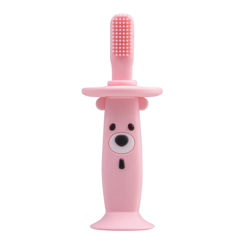 Cute & Non-Slip Design: Adorable bear-shaped grip with raised patterns makes it easier for babies to hold and control the toothbrush.