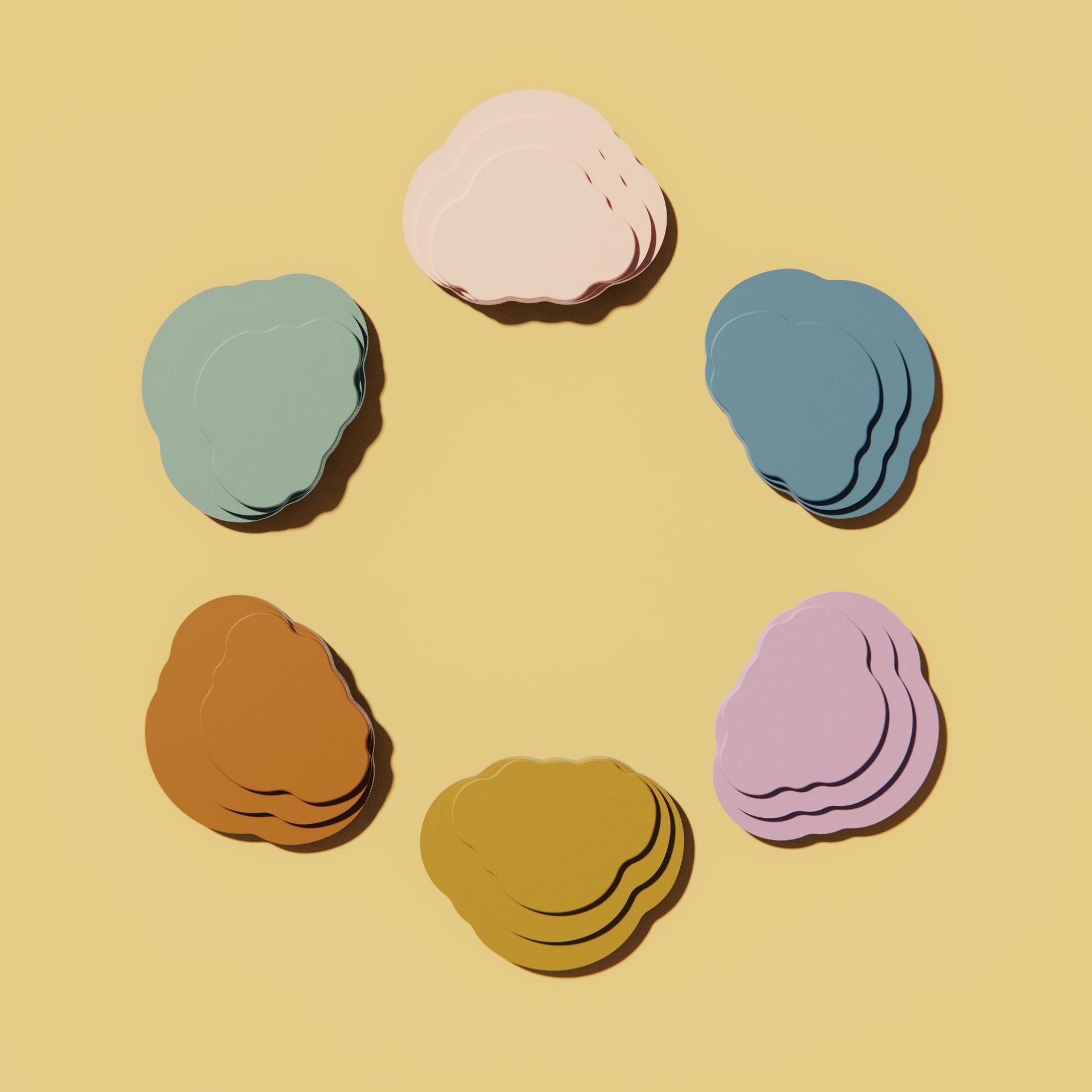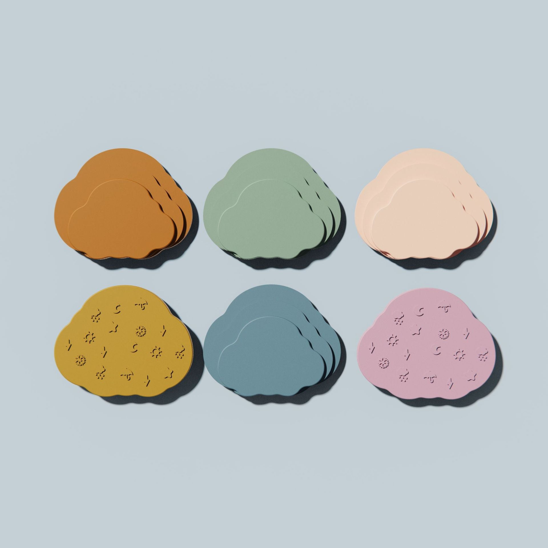 With six pastel hues (pink, beige, yellow, brown, green, blue), the set stimulates visual perception. The soft silicone texture soothes sore gums and promotes healthy oral motor skills as babies chew and explore.