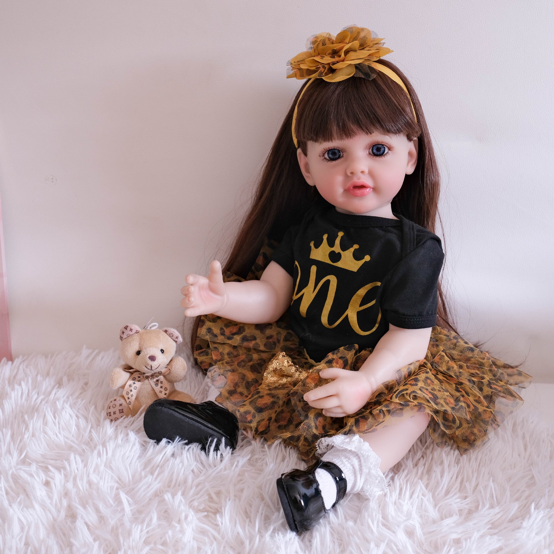 Name: 55cm Full Silicone Reborn Baby Girl Doll – Realistic Lifelike Newborn with Hand-Painted Details & Removable Wig